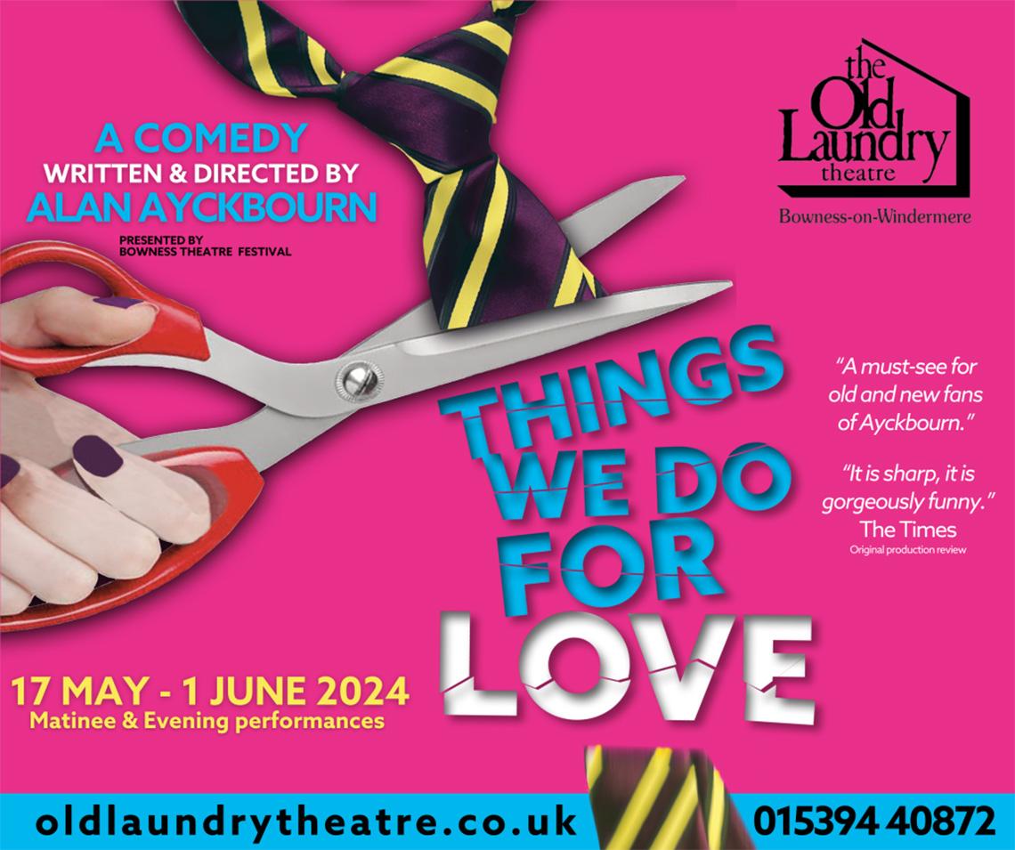 Olivier and Tony Award winning playwright Alan Ayckbourn’s much anticipated revival of THINGS WE DO FOR LOVE opens this week at The Old Laundry Theatre, Bowness-on-Windermere.